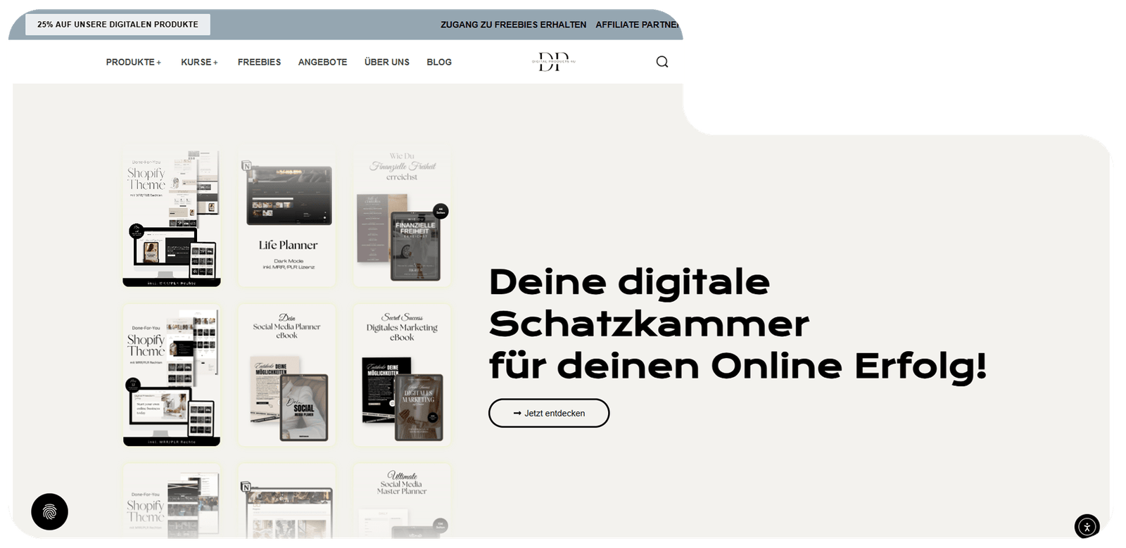 Für DigitalProducts4u haben wir einen modernen Shop gebaut, der digitale Produkte mit MRR- & PLR-Lizenz anbietet und gleichzeitig ein Affiliate-Partnerprogramm integriert – ideal für alle, die online durchstarten wollen, ohne eigene Produkte zu erstellen.